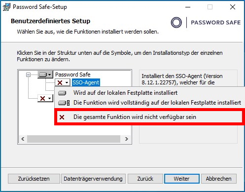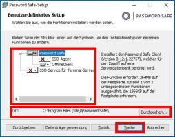 Schritt 2.2:Prüfen Sie, dass nur Password Safe + OfflineClient installiert werden und drücken Sie anschließend auf "Weiter".