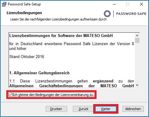 Schritt 1: Lizenzbedingungen lesen und akzeptieren (Druck-Funktion verfügbar)